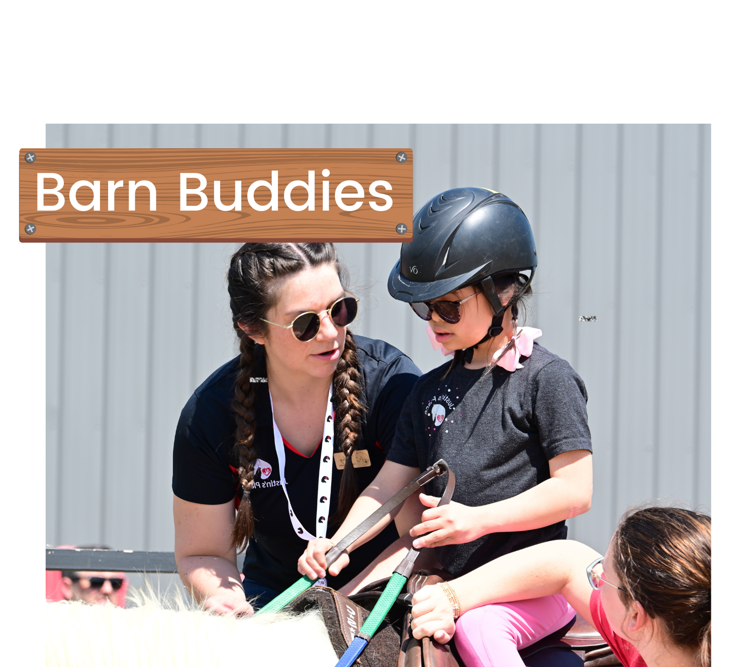 Barn Buddies is for children ages 3 to 12 who have a diagnosis of a disability or disorder affecting their overall mental, physical or emotional health.